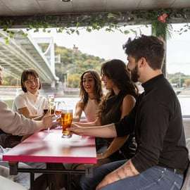 Deixe-se encantar por um inesquecível pôr do sol em um cruzeiro pelo rio Danúbio, durante sua visita a Budapeste. Imagine: vistas panorâmicas de tirar o fôlego do horizonte da cidade, pintando-se de cores vibrantes ao entardecer, enquanto desfruta de 3 deliciosos coquetéis.