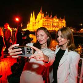 Delicie-se com o espumante enquanto navega por marcos históricos reconhecidos pela UNESCO, incluindo o imponente Castelo de Buda, o grandioso Parlamento e a elegante Ponte das Correntes. O pôr do sol pinta um cenário mágico, banhando o Danúbio em tons quentes e realçando a beleza arquitetônica de Budapeste.