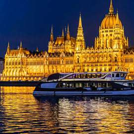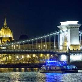 Navegue pelo rio Danúbio a bordo de um catamarã numa viagem mágica pela noite de Budapeste. Desfrute de música ao vivo ao piano e de um delicioso jantar de 4 pratos enquanto passa pelos marcos icónicos da cidade.