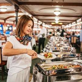 O jantar, servido em buffet, oferece um autêntico banquete húngaro: experimente a tradicional Sopa Goulash estilo Alföld, o saboroso Paprikash de carne com bolinhos caseiros e deliciosas variações de Strudel húngaro.
