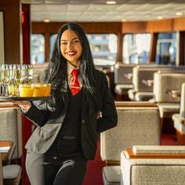Registre momentos inesquecíveis com fotos incríveis das atrações e desfrute de bebidas deliciosas no elegante bar a bordo, com serviço de mesa.