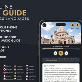 Deixe-se encantar pelas vistas deslumbrantes de Budapeste. Explore os marcos históricos ao longo do Danúbio com a ajuda de um guia de áudio online, acessível através de um código QR a bordo. Este guia, disponível no seu próprio telemóvel em mais de 15 línguas, oferece uma experiência imersiva com textos e narrações. Recomendamos o uso de seus próprios auscultadores para uma audição otimizada. Nossa equipe estará à disposição para auxiliar com qualquer dúvida sobre o guia.