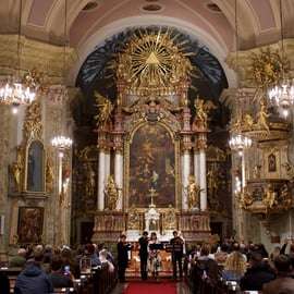 Aproveite uma bela noite com um concerto clássico de uma hora na Igreja barroca de Santa Ana, um dos locais históricos mais charmosos de Budapeste. Ouça a música de A. Vivaldi, W. A. Mozart, J. S. Bach e outros grandes compositores enquanto suas melodias preenchem esta igreja pacífica e atmosférica.