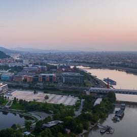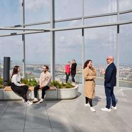 Desfruta de vistas panorâmicas de Budapeste a partir do SkyDeck no MOL Campus. Usa a aplicação SkyDeck baseada em RA para explorar a cidade e os seus pontos de referência.