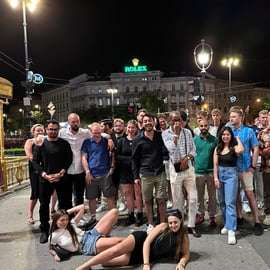 Comece encontrando o teu guia local no centro da cidade de Budapeste. Apresente-se aos teus companheiros de pub crawl e sinta a emoção de conhecer novas pessoas para dançar a noite toda juntos.