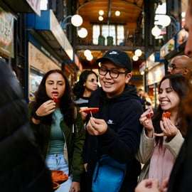 Junta-te ao novíssimo 2026 Food Tour criado por George. Um dia de degustação em pequenos grupos, com histórias que parecem saídas de um local, com mais de 20 degustações incluídas.